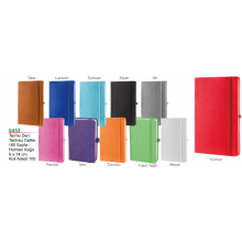 • Termoderi kapak • 9 x 14 cm • Tarihsiz iç - çizgili • 80 yaprak • Kalem geçme yeri • Krem rengi kağıt • Serigraf, sıcak baskı ve UV baskıya uygundur.