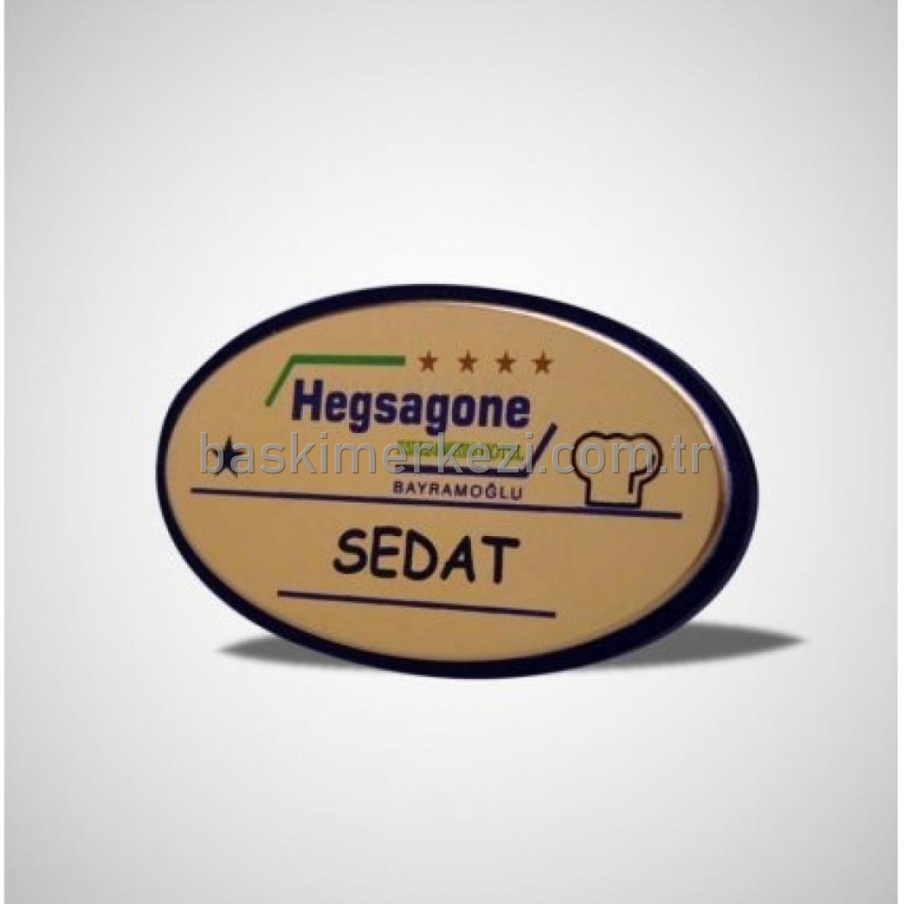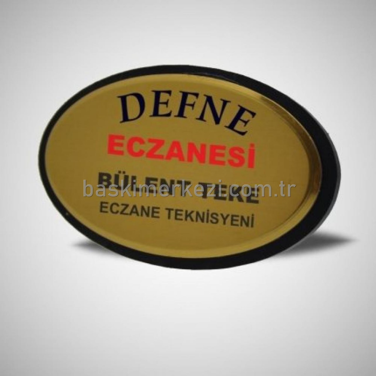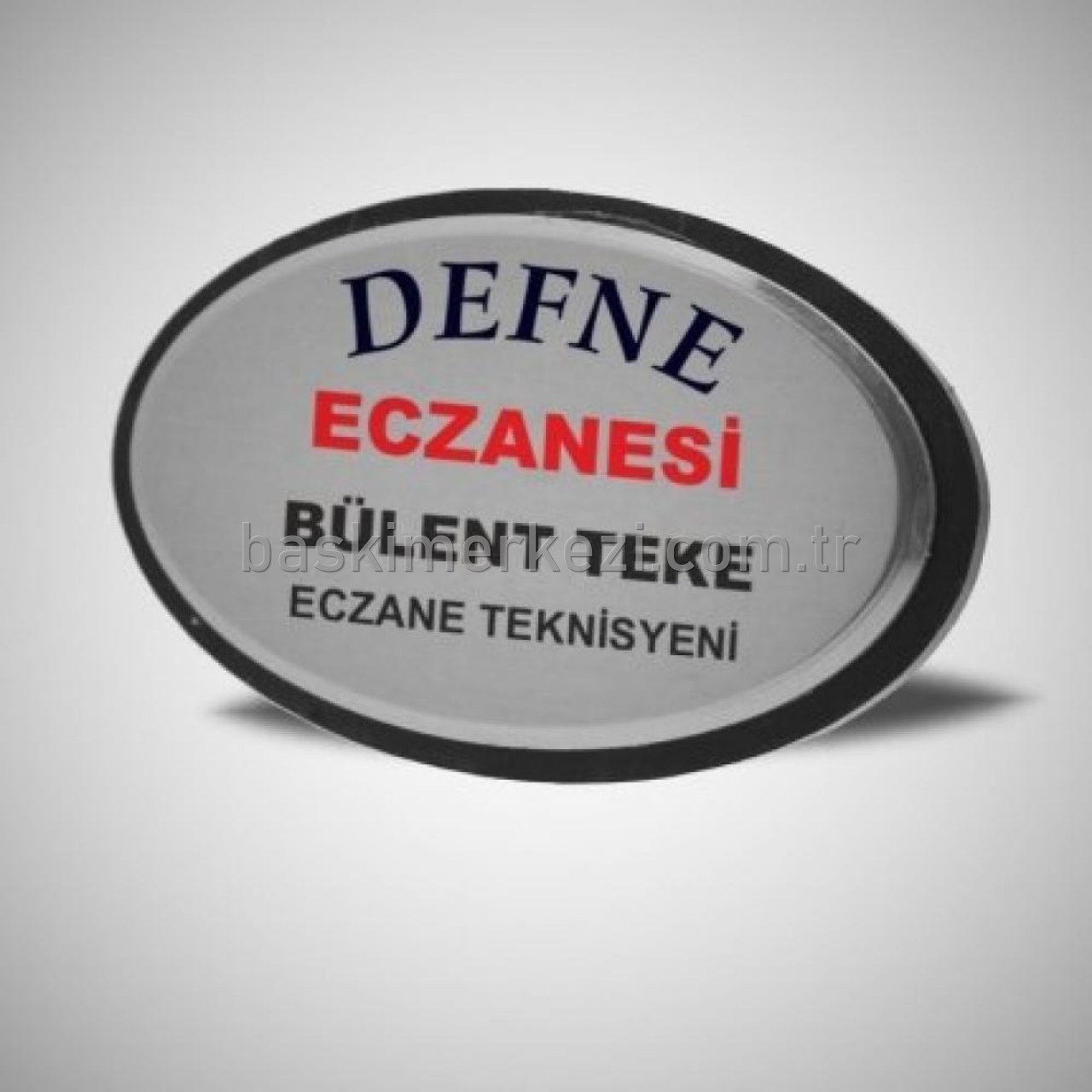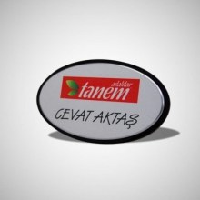 Oval yaka kartı; 40mmx77mm yaka isimliğmiz baskılı olarak teslim edilmektedir.
