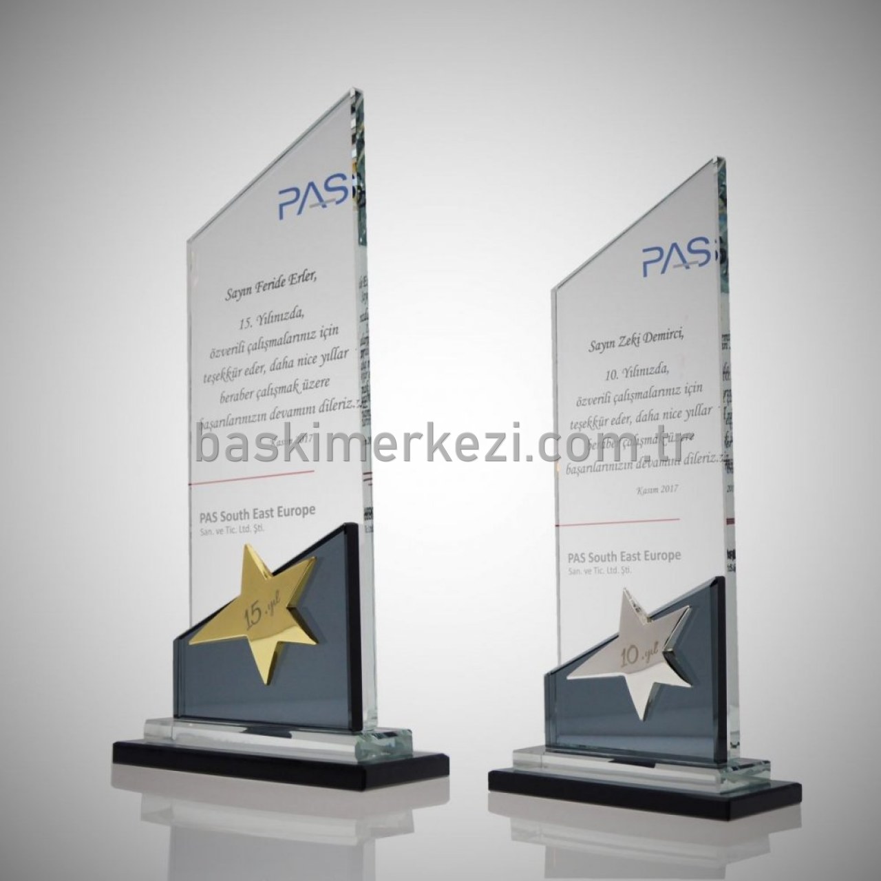 Yıldız Plaket : 29cm boyutunda yıldıza özel lazer baskılı kristal plaket