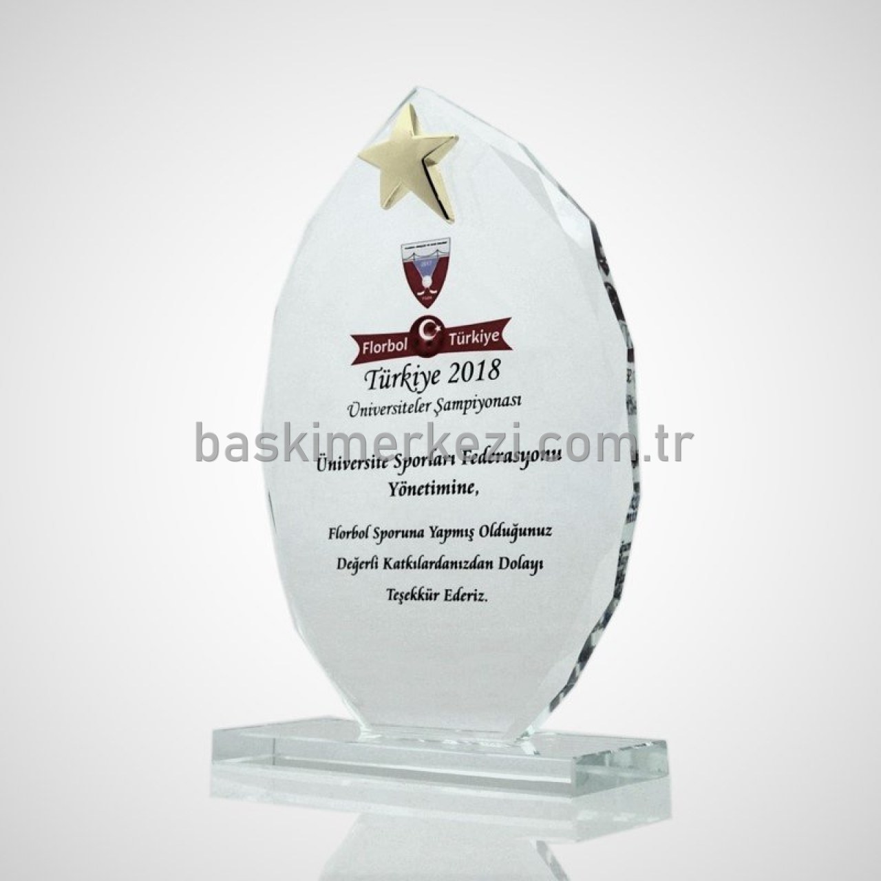 Kristal yıldızlı plaket modeli : 11cmx20cm uv baskılı modelimiz çok şık kaliteli plaketlerimzdendir.